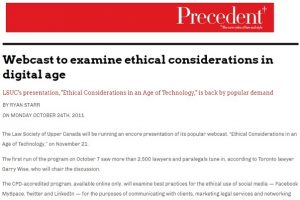 Precedent Magazine – Webcast to examine ethical considerations in digital age